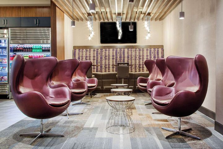 The hotel offers a variety of amenities including a fireplace in the lobby, a snack bar/deli, a 24-hour fitness center, and a hot tub for guests to enjoy.